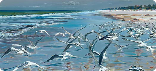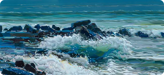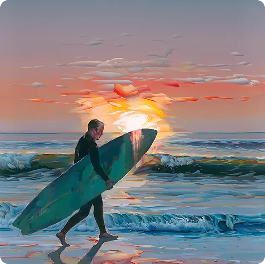 Experience Kote’s bold brushwork and vibrant colors up close. His latest collection features some of his most captivating seascapes, unlike anything you’ve seen before.